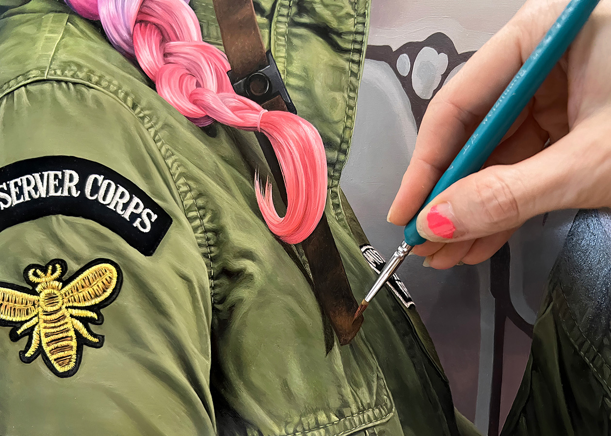 Works detailed in the Antipodes 2024 flyer at the top of this page are (L to R): Ben Howe "I Never Paint Children Or Astronauts" - oil painting mounted on panel, Lix North "Early Warning System" oil on aluminium, Pete Conroy "Earth Angel" oil on canvas.