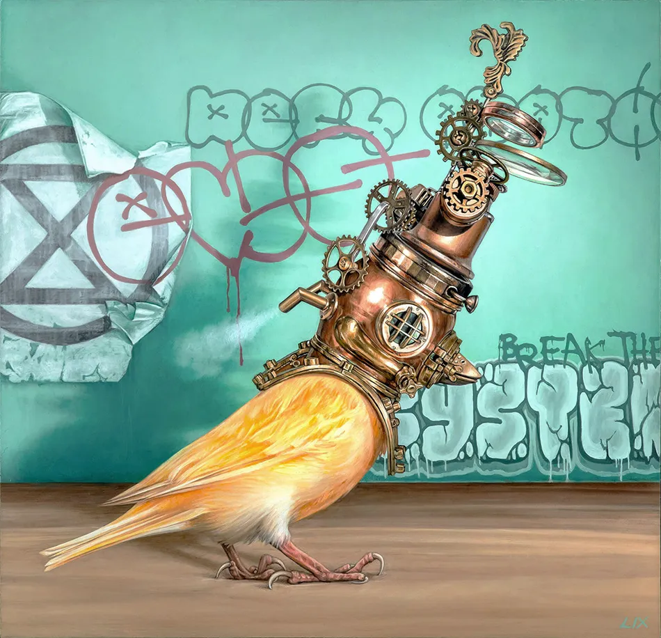Historically, millions of canaries were sacrificed to warn miners of invisible dangers until 1986. They have long been my primary avatar, a consequence of feeling a deeper kinship with the non-human world. Here, they return not as instruments but as protagonists: a small, vigilant presence guiding us through the diaphanous remains of our myopic dreams.