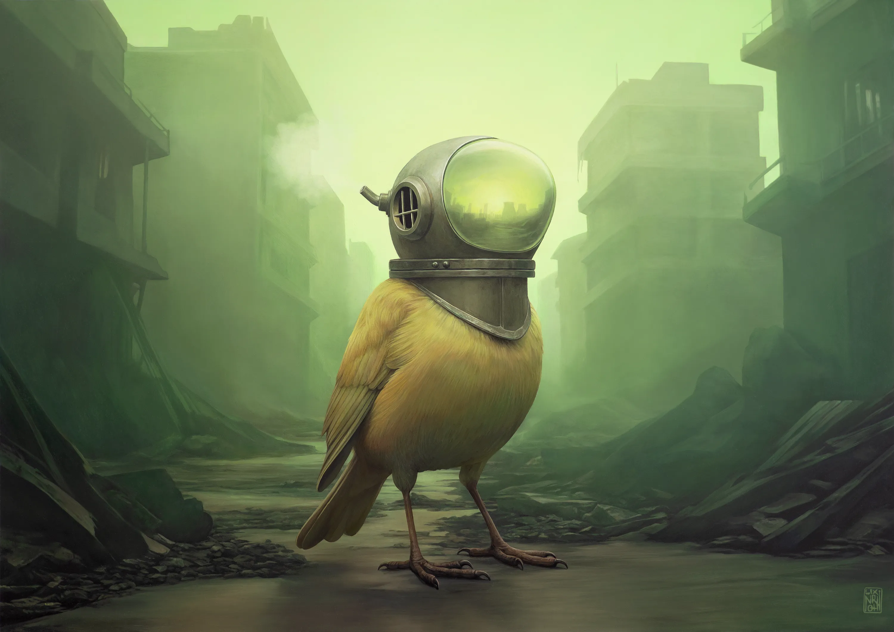 Historically, millions of canaries were sacrificed to warn miners of invisible dangers until 1986. They have long been my primary avatar, a consequence of feeling a deeper kinship with the non-human world. Here, they return not as instruments but as protagonists: a small, vigilant presence guiding us through the diaphanous remains of our myopic dreams.